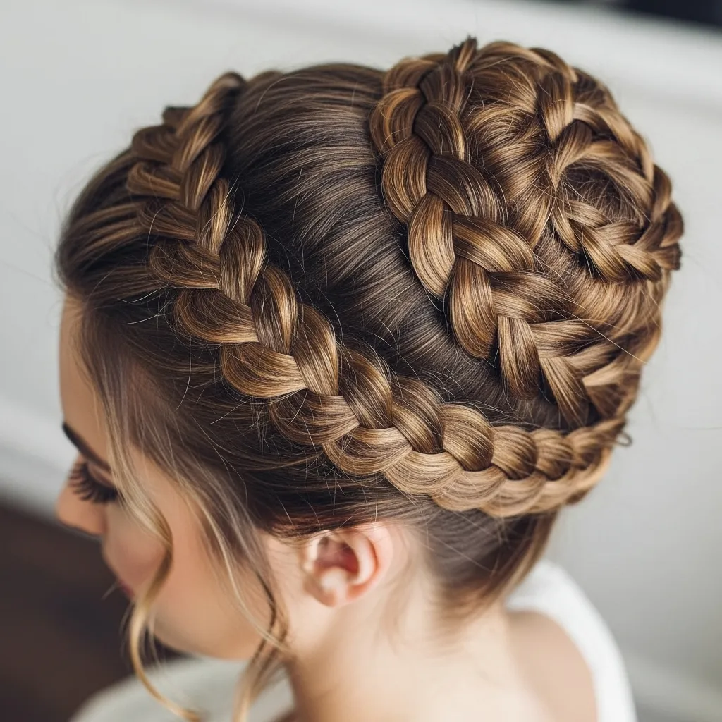 The braided crown updo is a romantic and regal hairstyle perfect for weddings, parties, or special occasions. Braids wrap around the head, creating a sophisticated and Instagram-worthy look. This hairstyle works well for medium to long hair and can be customized with loose tendrils or floral accessories. It combines elegance, creativity, and femininity, offering a trendsetting style that is both intricate and versatile while elevating any outfit or event ensemble.The braided crown updo is a timeless and trendsetting hairstyle that exudes elegance, romance, and sophistication. By weaving hair around the crown, this style creates a regal and polished look suitable for weddings, parties, proms, or formal events. Its intricate design offers a statement-making appearance while remaining feminine and flattering.