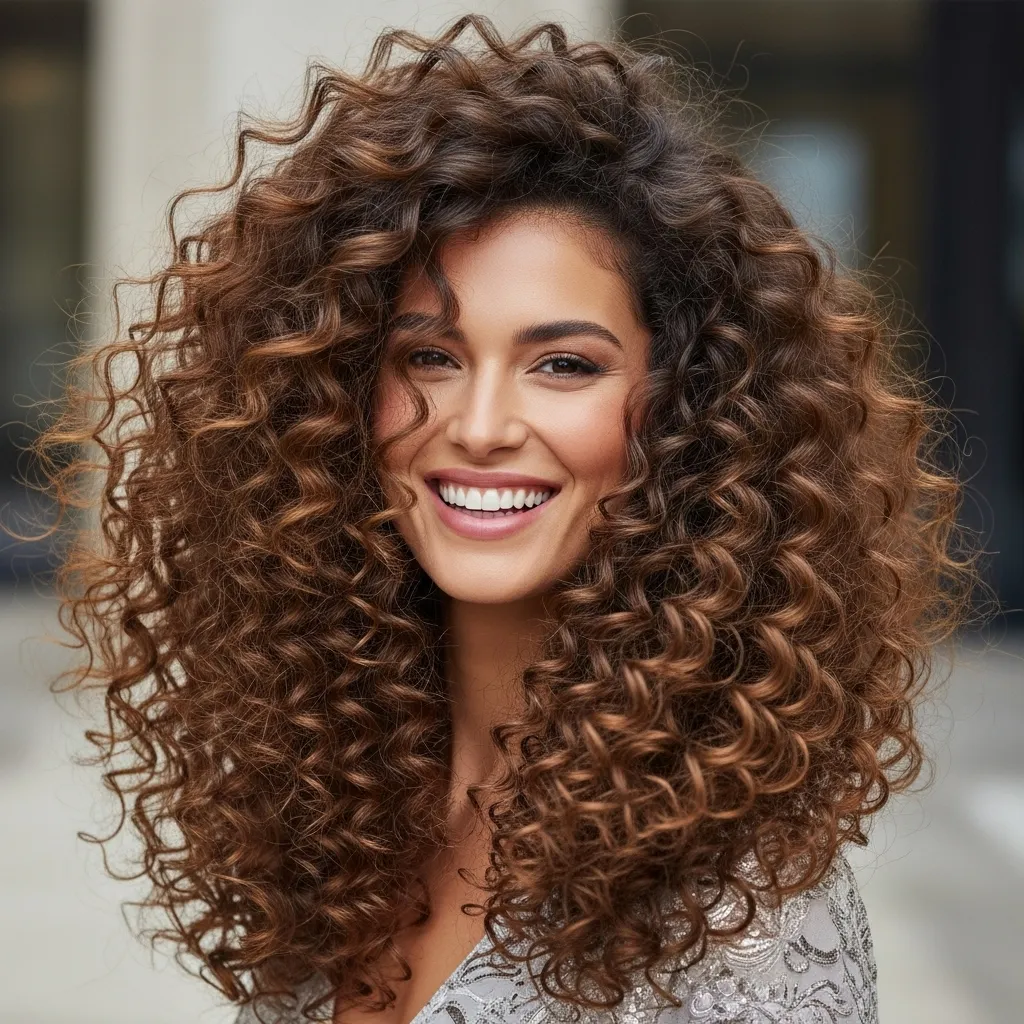 Achieving voluminous curls involves using curling irons, wands, or rollers. For extra lift, applying a volumizing mousse or root-lifting spray before styling helps achieve body and resilience. After curling, gently tousle curls with fingers to create natural movement without disrupting the shape. Finishing sprays or shine serums can enhance gloss while taming frizz.This hairstyle is versatile and complements various face shapes. Soft, loose curls provide a romantic, approachable aesthetic, while tighter curls convey boldness and confidence. Voluminous curls can be paired with layers, highlights, or balayage to enhance texture and depth, making the hairstyle visually striking