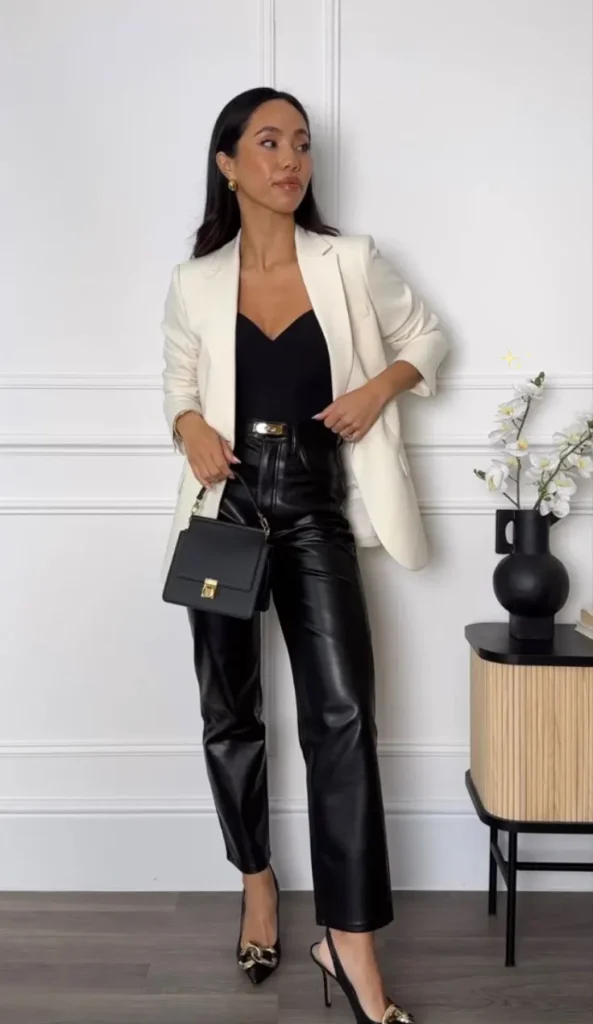 Clean lines, luxe fabrics, and neutral tones are the true foundations of elevated fashion. When you keep the palette light and cohesive think creams, taupes, or sandy beige the result is streamlined and sophisticated. Choose a ribbed or silk top tucked into tailored beige trousers. Add nude heels or slip-on mules to enhance the elongated look. It’s quiet luxury at its best.